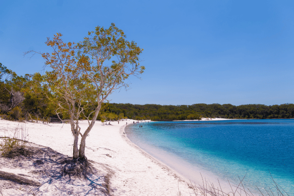 One of the most popular freshwater lakes on the island, Lake McKenzie is a perched lake, meaning its water comes solely from rain. It features crystal clear water and beautiful white sand surrounding it.